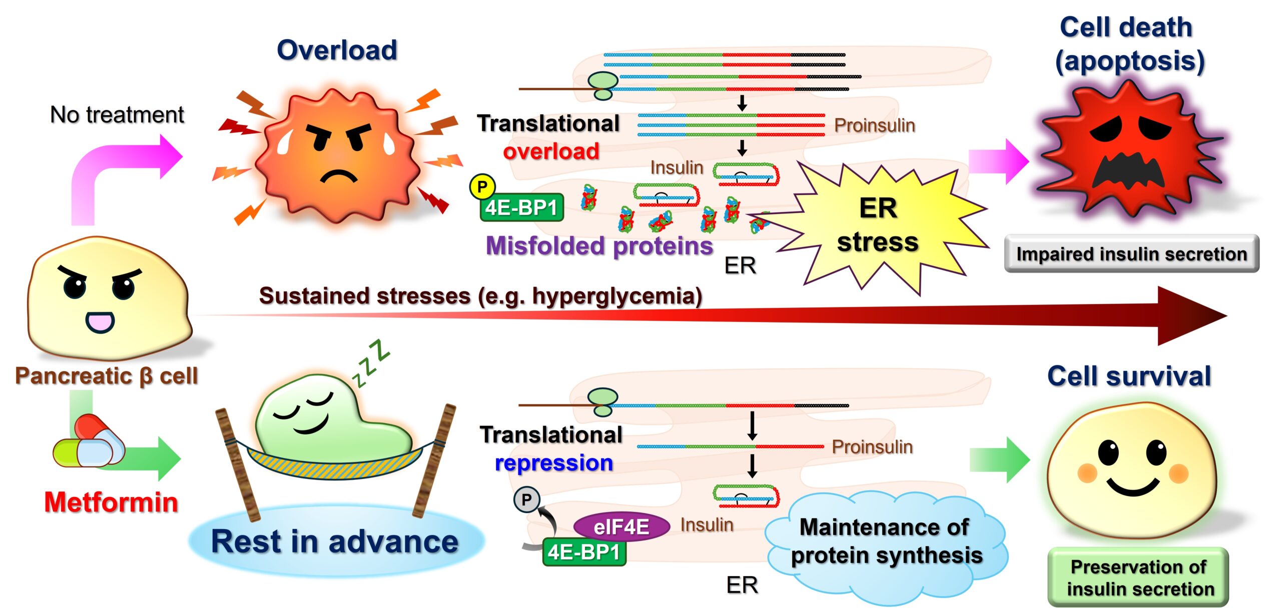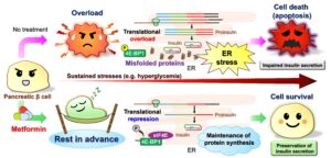 Ryota Inoue, Kazuki Tajima, Tomoko Okuyama, Chisato Sakai, Tamaki Kanno, Meng Zou, Mayu Kyohara, Kohichi Matsunaga, Takahiro Tsuno, Junyu Luo, Emi Ishida, Shin-ichi Horike, Tohko Hirano, Noriaki Arakawa, Tatsuya Kin, A.M. James Shapiro, Yasuo Terauchi, Hideru Obinata, Hisashi Hirano, and Jun Shirakawa. Metformin suppresses β-cell apoptosis under ER stress by inhibiting protein translation. Metabolism. in press, 156607, 2026. doi: 10.1016/j.metabol.2026.156607