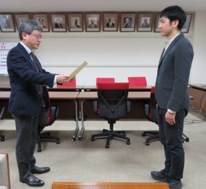 令和7年2月27日(木)に生体調節研究所における所内表彰を行いました。特に顕著な研究業績を上げた「若手優秀賞」を表彰し藤谷研究所長より賞状をお渡ししました。おめでとうございます。今後のご活躍も期待しております 令和6年度若手優秀賞:佐々木 妙子 助教若手優秀賞:吉成 祐人 助教