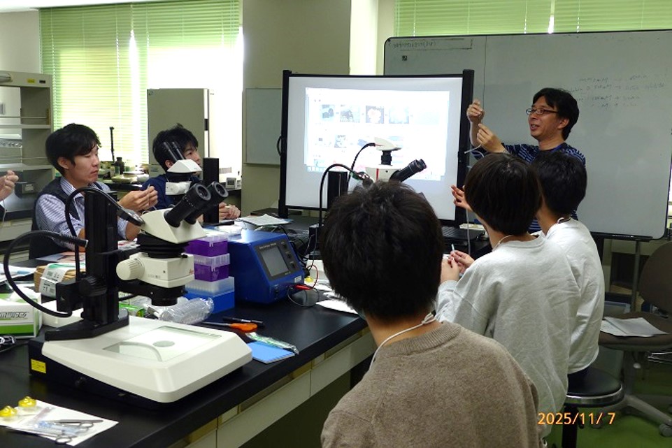 令和7年11月7日(金)に「令和7年度 内分泌・代謝学共同研究拠点講習会」を実施しました。「ゲノム編集マウス作製コース」をゲノム科学リソース分野,「組織幹細胞(オルガノド)培養コース」を粘膜エコシステム制御分野が担当し,全国の研究機関より18名の方にご参加いただきました。座学の後に実際に手を動かしていただく実践的な内容となり,短い時間でしたが本研究所のリソースを提供するこの講習会が,みなさまの技術向上のお役に立てれば幸いです。