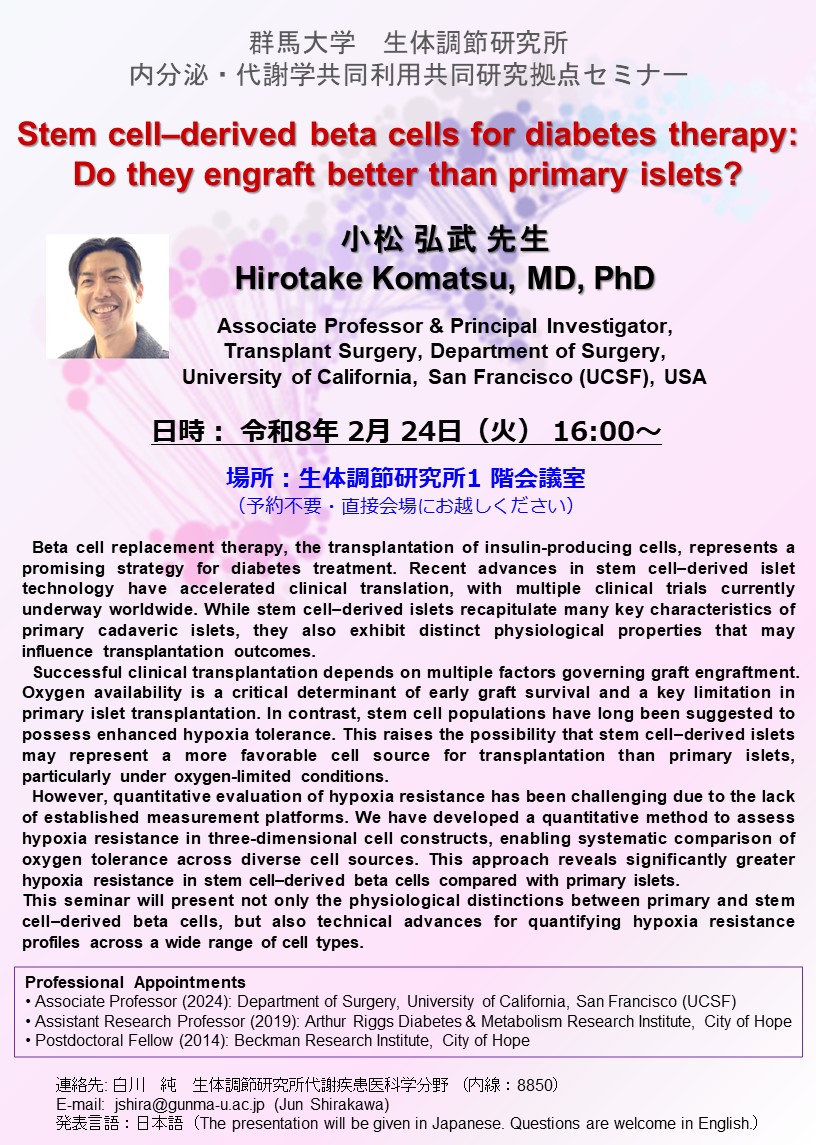 ・担当:生体調節研究所 代謝疾患医科学分野 白川 純(内線:8850)