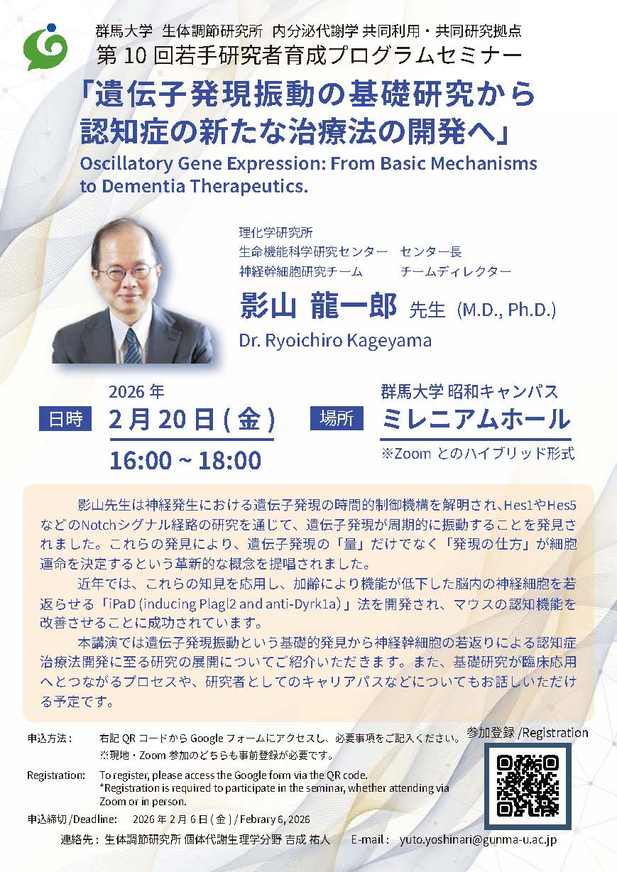 内分泌・代謝学共同研究拠点成果報告会・ワークショップ日時:2026年2月5日(月) 13:00-会場:生体調節研究所 1F 会議室 開会の…